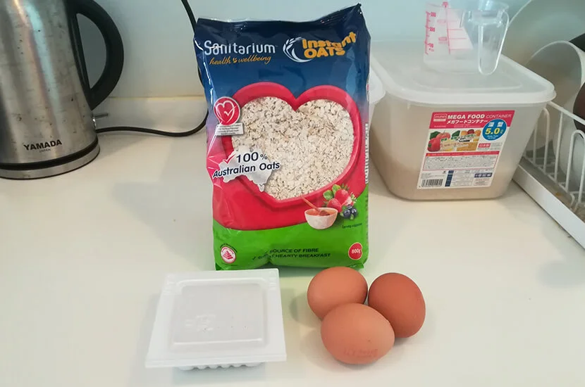 しっかりと食べた感じもあり、調理自体もレンジでチンするだけなので、かなりおすすめです!オートミールの調理方法はネットにも色々落ちていますが、僕らはスプーンおおさじ5杯〜10杯くらいに適当に水をいれ、レンジで30秒→30秒と繰り返し、好みの感触にして食べています。(※ちなみにFair Priceなどのローカルスーパーで手に入ります)