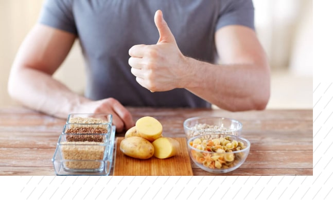 食事の際に野菜やタンパク質と一緒に摂取すると血糖値の上昇を抑える効果があります。野菜にはビタミン・ミネラスも多く含まれるので毎食食べるのが理想。・セカンドミール効果