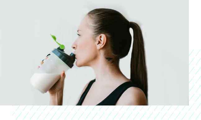 ホエイプロテインは吸収がはやく、筋肉の合成に有効な必須アミノ酸、BCAA(※)が豊富に含まれています。BulkyFitnessではトレーニングが終わった後、このホエイプロテインを飲んでもらっています。