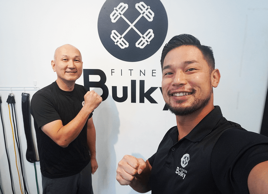 たまたまBulkyさんのHPを拝見してHIROTOさんの「パーソナルトレーニングで人生を変える」という言葉にビビッときてカウンセリングを申し込みました。カウンセリングでは知識と経験に基づいた内容を丁寧にお話しいただいたので安心してその場で入会しました。まともに運動もしておらず、20年以上ぶりの筋トレで、ゴリゴリマッチョのトレーナーの皆さんのご指導についていけるか不安でした。しかしながら、トレーナーのみなさんの明るく褒め上手なご指導で挫折することなく32回のトレーニングを約4ヶ月半ほどで終えることができました。Bulkyさんを選んで本当に良かったです。結果だけでなく、トレーニングや食事指導を通じて教えていただいた内容にも大満足です。真剣に身体作りをしたい方には特にお勧めです。